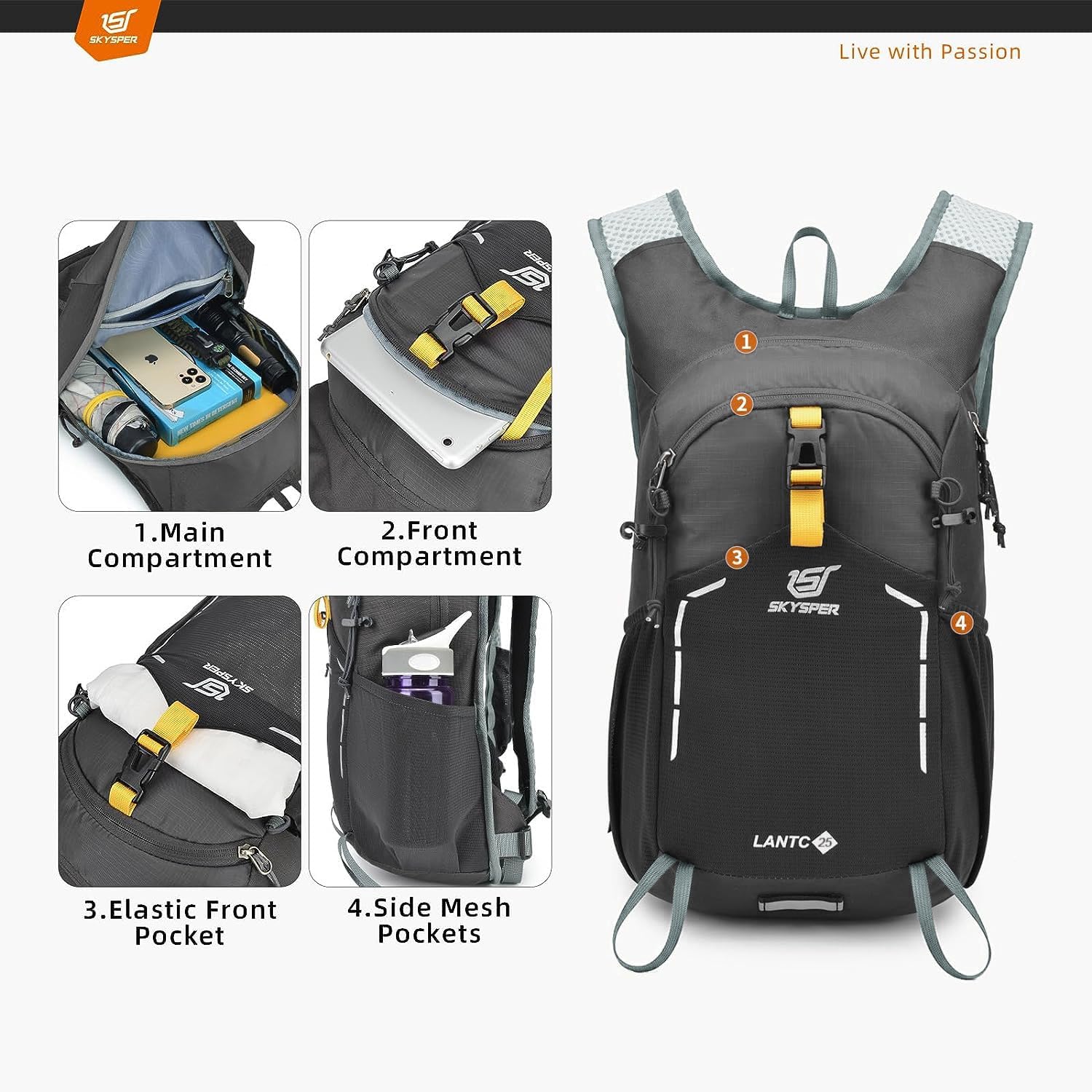 SKYSPER Small Hiking Backpack – 25L Travel Daypack Lightweight Bag Water Resistant Hiking Backpacks for Women Men