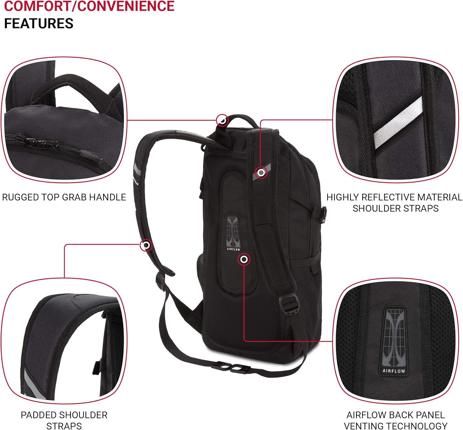 Crafted specifically for the urban commuter, the narrow SwissGear 3598 City Backpack has a deceptively spacious silhouette with an extremely low profile that is highly unobstructive on one’s back. With a front organizer panel and a designated tablet pocket, secure your devices and effortlessly retrieve them at the office or airport. Ergonomic shoulder straps and back Airflow panels accentuate its built-in comfort.